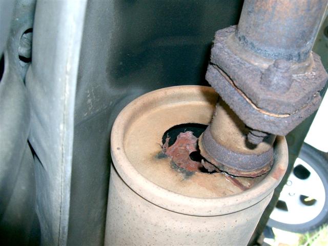 良くがんばったぞ、トッポ! PR 走行12万キロのトッポで350キロを走り帰省しました。行きはよいよい帰りは怖いの諺とおり、帰路についたばかりの松江市内でエンジン音が急に変わりました。他に異常がないのでマフラーが逝ったかと直感しました。音は次第に大きくなります。兎に角現状確認と思い三菱はないかと探すのですがありません。仕方ないのでメジャーのトヨタのディラーに滑り込みました。断られるかと心配しましたが点検してもらえるとのこと。アイスコーヒーを飲んで待っていると(本当は一緒にピットに入りたいのですが・・・)やはりマフラーがはずれているとのこと、今から京都までかえるので脱落の心配はないかと訊くと、なんとかもつのではとのはなし。もちろんマフラーの交換を進められましたが、このトッポの役割は来年の5月までの予定です。巨額の再資本投下はかんがえられません。 で、爆音を響かせて中国縦貫道を走り、なんとか帰り着きました。でジャッキアップして覗き込むとごらんのとおり。なんとかもったのが不思議です。そこで写真のとおりのやっつけ修理をしました。 何日もつでしょうか? がんばれトッポ、来年5月まで! |