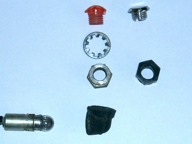 向かって左側はオリジナルのニョートラルランプのパーツです。(但しメッキのリンクは欠品です。)