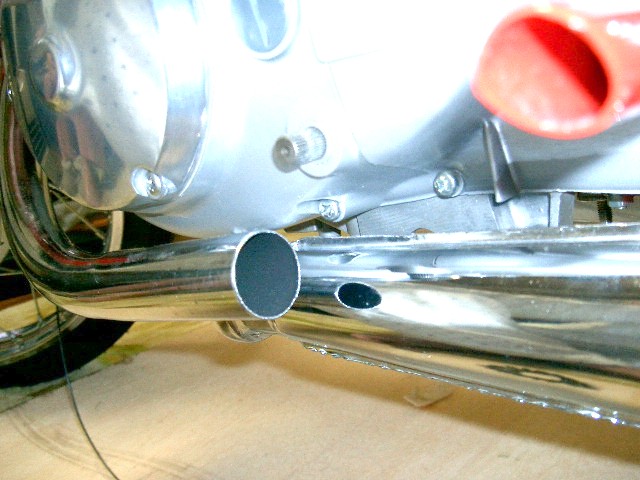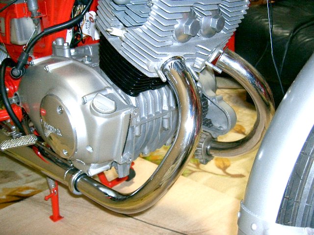 エキパイは①R側は明らかに純正では有りませんでした。②L側は?でした。 そう云う状態でヤフーオークションに「CB92用Rエキパイ」が出展されていまししたので落札。\4100円。 で仮付けしてみました。R側はピタリと納まっています。OKです。 塗料が流れているように見えますが、あくまでも光の反射です。 このようにミタッっと納まります。 ところがL側は、エキパイの下部をマフラーに入れると、このように合いません。 当然純正ではありませんね。 そこで上部を合わせると下部はこのようになり、少し地面側にRを広げると納まりそうです。で、どうしてRを広げるかです。少しですから万力に挟んで、パイプを突っ込んでグイと広げてやろうかと思っています。 PR