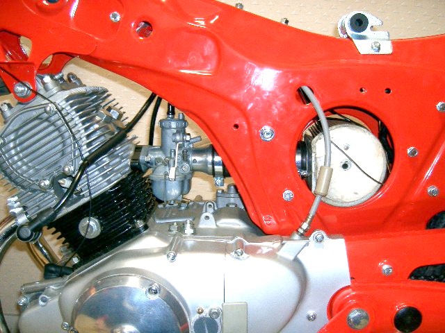 キャブレターとエアクリーナーをとりつけました。結構時間が掛かるんです。素人は。あっちのネジを緩めこつちのネジをゆるめ、ケーブルをひっぱったり、間違ったり。結構時間がかかります。素人は。