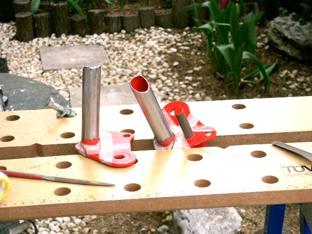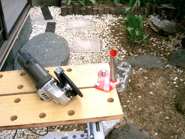 ステップをサンダーで軽~く削りました。縦に削り痕が写っていますね(途中撮影)。おっかなびっくりへっぴり腰でやっていますので、当然のごとく旋盤のように均一には削れません。削り痕がついている程度で実際はほとんど削れていないと思います。後は荒めのペーパーで周囲をぐるりと削りました。