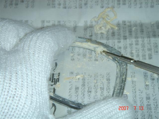 ガラスを外すと、両面にパテがベットリ塗ってあります。
