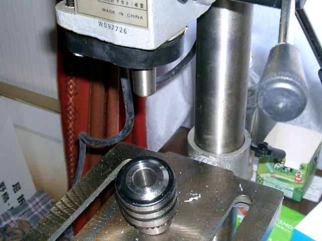 構造をみるとテーパー状のシャフトにチャックは嵌め込まれているだけなのですね。こんな構造でいいのでしょうか。板をかましてハンマーで勝ち込みましたが大丈夫かなぁと不安が一ぱいでつかいましたが・・。