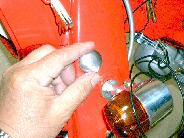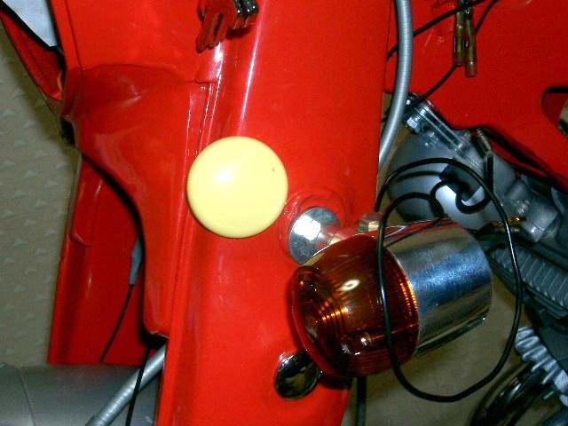 フォークとの接合部の化粧に、100円ショップでボタン(この上に布を張ってボタンにするらしいのです)を買ってきましたが、二回り小さかったようです。