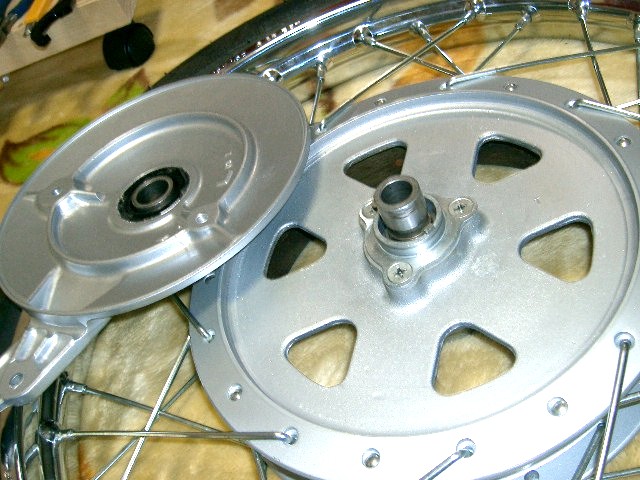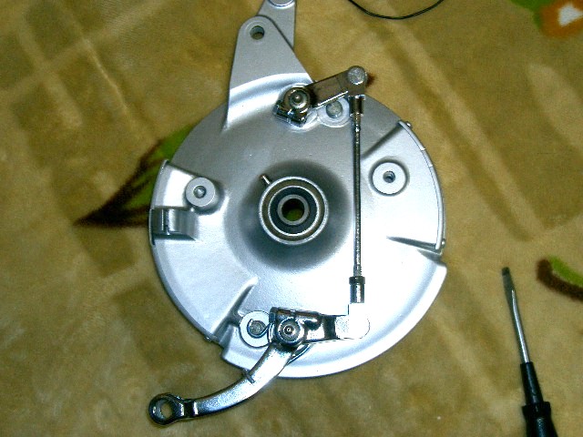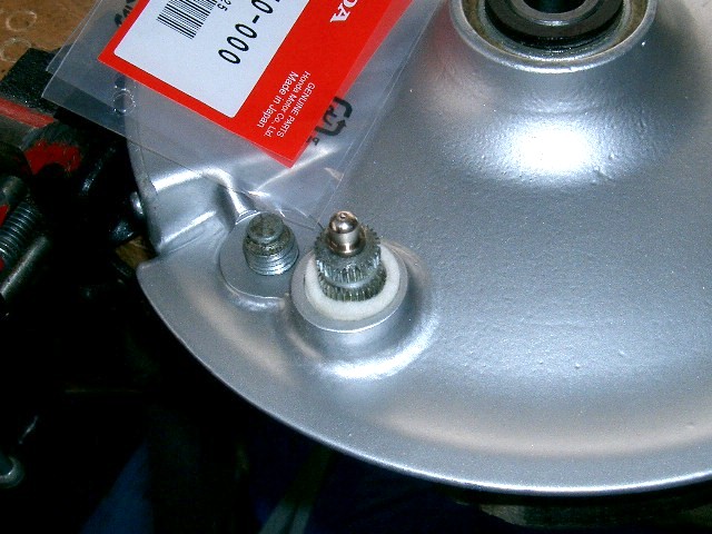 フロントホイールを組み立てます。まずスピードメーターケーブル側です。