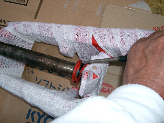 ダストシールが無いので、購入して挿入するため、ボトムコーンレースを抜いて