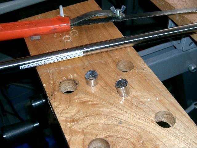 こちらも同様なのですが、ボルトを重ねてゲタにするのは、今ひとつです。そこで内径13ミリのステンレス棒を切って作りました。斜めになっているのはあえて斜めにしているのです。