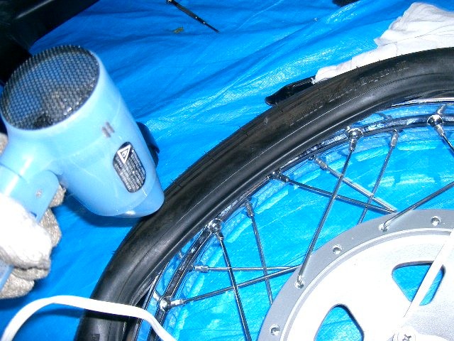 で、もう片一方のミミを入れるのですが、入りません。勿論レバーを使っていますが。そこでドライヤーで暖めて、渾身の力を入れて・・。