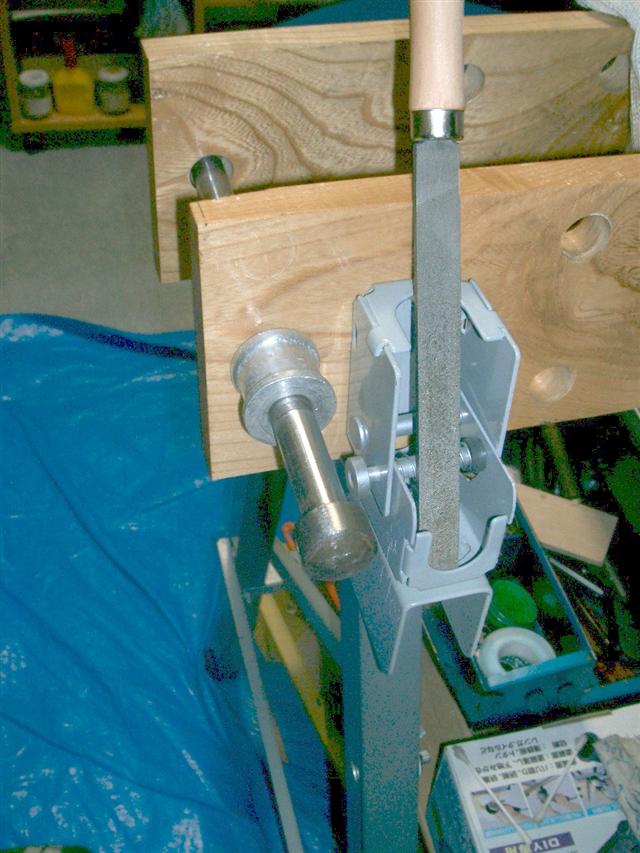 作業台を利用してロクロよろしく左手で回し、右手でヤスリ次にペーパーをあててピンホールの底まで削りました。写真④は写真写りはいいのですがマダマダの状態です。