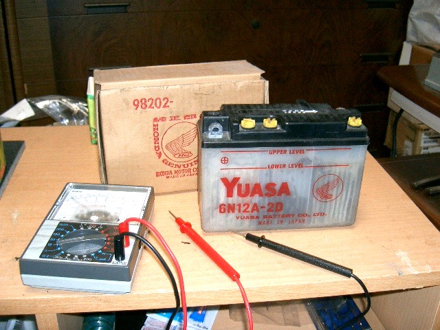 神々しいホンダのマークが入った箱付き未使用品です。電圧を測ったら1.6V程度でした。明日、奇跡を信じて充電してやります。