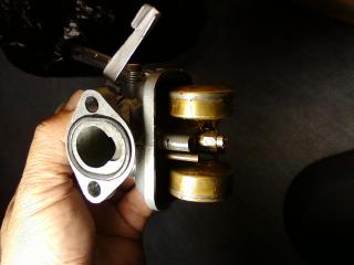 スロージェットの油面側の端は、チャンバー上面の近くです。マジックで印をつけましたが、見えないでしょうね。