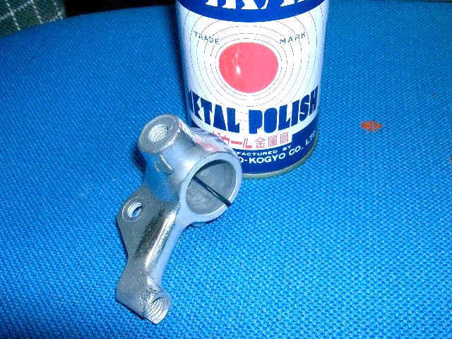 レバーブラケットを磨いています。ブラストショットの跡を残したままで、光っていますがしょうがないですね。
