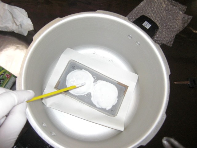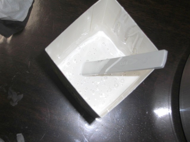 こんな出来の悪い木型枠をつくったり、折角切り出したアクリルを割ってしまったり していました。 で、やっと型枠をつくりました。L型アクリルを組み合わせて、あわせ部分はガムテープで接着します。基本的には、木でも紙でも、発泡スチロールでもいいのですが 何故かアクリルにこだわるのです。理由は特にありません。なにか型枠にまでこだわった感が欲しいだけ(笑い) こんな感じです。ちょっと狭かったかなと思いますが、まっ、いいか。 |