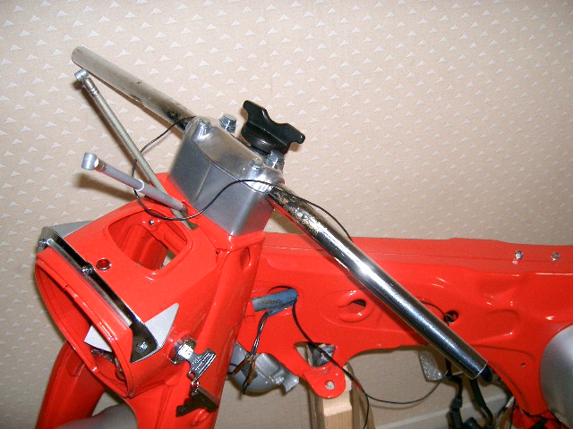 バッテリーのマイナス線です。多分、下のワッカをエンジン取り付けボルトにくぐらせるのだと思います。これならコーナンのバイクコーナーで見たような気がします。出来れば新品に替えようと思います。 このボルト、新品に替えようとしてパーツリストの通り5×10のボルトをコーナンで買いました。ところが入りません。ピッチが違うのでしょうか?です。 ハンドルはオリジナルではありません。CMSで再販品を売っているのですが、いっそ買うなら、また、どの道再生品ならスワロータイプのにしたいなぁと思っています。 ヨシカワオートクリニックでメグロようのスワロータイプを売っているのですが、CB92用の再生品をどこかで作っていないか気長に調べます。それまではこの素性怪しきハンドル廻りをそのまま使います。 |