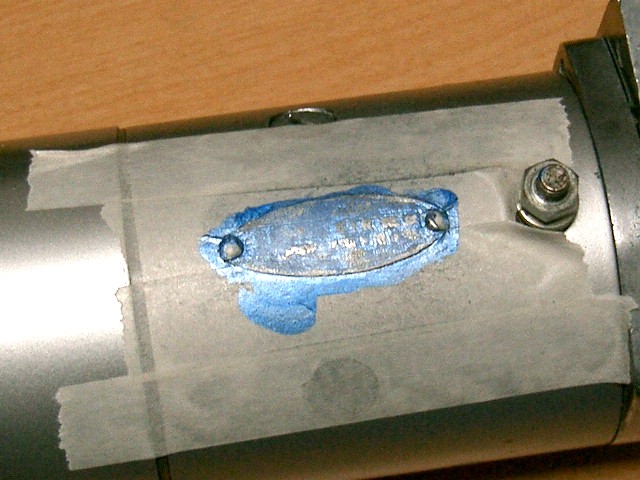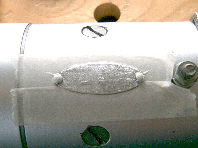 古くからご覧になっている読者の方は記憶に残っておられると思いますが、スターターのケースを強力錆取り効果のあるサンポールにドボンとつけました。そして銘板がご覧のように溶けてしまったのです。でも着色したらもう少し何とかなるかなと思ってマスキング。 タッチアップ塗料で付属の筆塗り。この辺から失敗の予感。 で、ペーパーで研いでいくと、案の定失敗。もともと綺麗には出来ないと思っていましたが、それ以上の出来の悪さです。機会をみて再挑戦です。