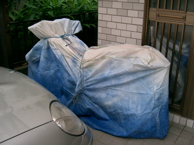 カバーを被せて、梅雨の晴れ間を待ちます。