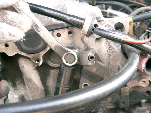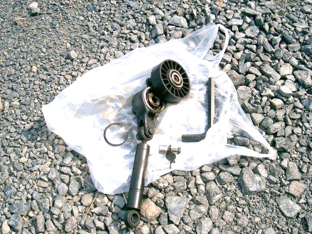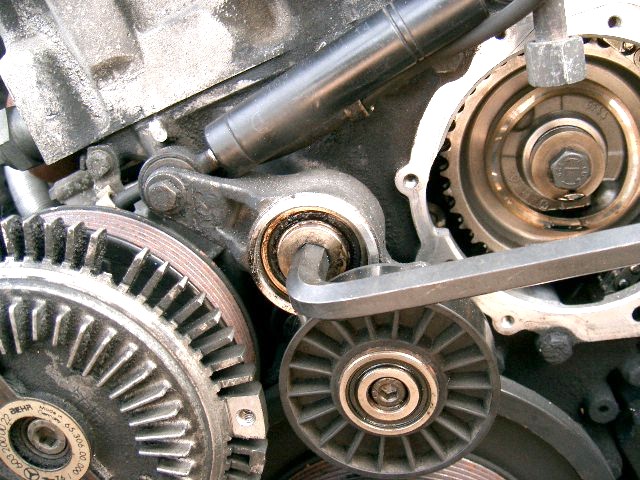 インジェクションポンプの底部から燃料が漏っているので、取り外したいと思っています。後から、この作業は必要ないのではと思ったのですが、ベルトテンショナーをはずします。