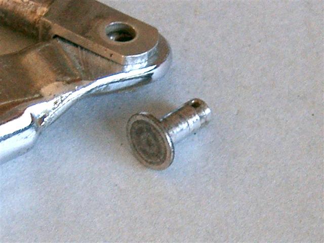 写真②はチェンジペタルの裏側です。表側は滑らかにクロームメッキがのっているのですが、裏側は写真のように凸凹です。これって元々は滑らかな下地が錆によって凸凹になったのでしょうか?それとも元々この程度の下地だったのでしょうか?。オリジナルを知らないので?です。それにしてもこのチェンジペタルの製造方法も興味深々ですね。