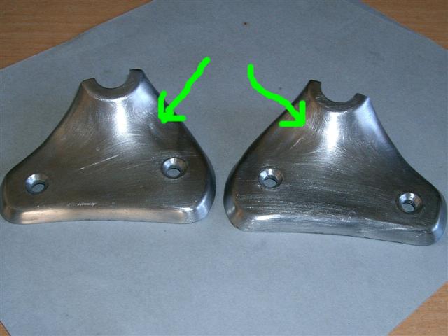 写真③④ ガバーの深絞りの皺は矢印の個所に相似形で現れています。従ってこれが製造技術の限界だったのでしょう。しかし見て分かる皺のまま塗装にかけるとは思えないのです。当時の技術者が、職人が、それでよしとしたとは思えないのです。