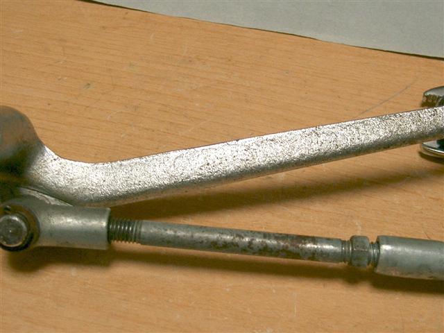 写真④リヤーブレーキロッドです。曲がってしまって真っ直ぐにしようとするのですが微妙に直りません。機能的には問題はないと思うのですが、気持ちが悪いのです。なにか良い方法はないでしょうか。昔会社でひずんだ鋼板をハンマー一つでまっ平らにする職人さんがいました。そんな人がいないかなぁ~。