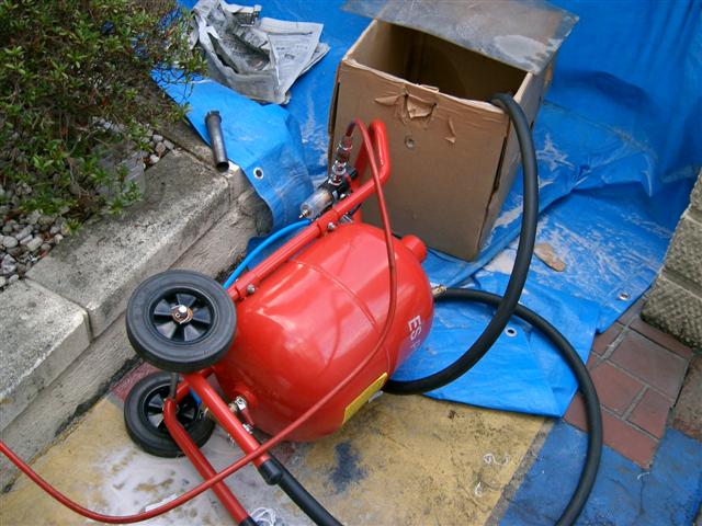 サンドブラストしました。クソ暑い最中覚悟を決めてやったのですが、成果が全くなしに終わりました。主な原因はガラスビーズが湿って詰まってしまうのです。水抜きは2ケつけているのですがすぐに詰まるのです。何か良い方法はないのでしょうか?