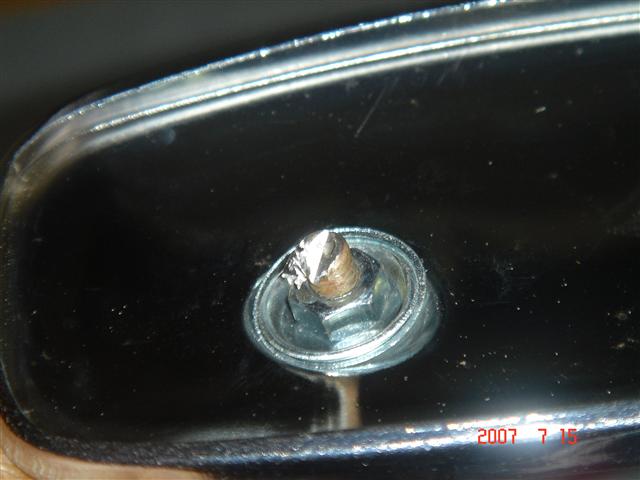 写真③ このバイクには色々疑問があります。ガラスを採った内部のステーとミラーケースを接続しているネジ