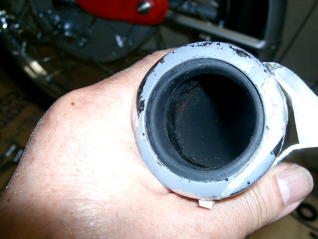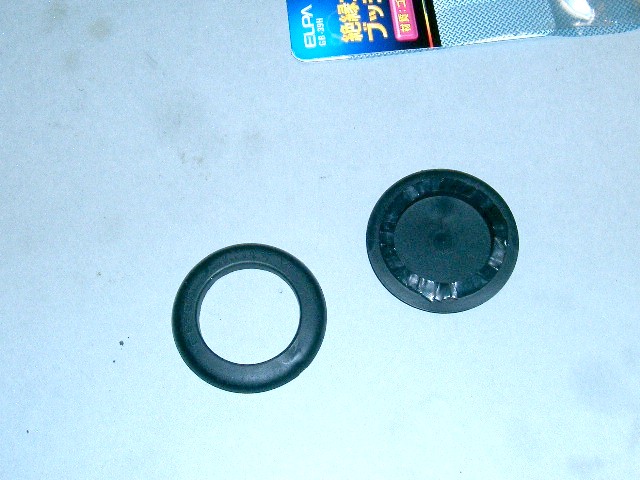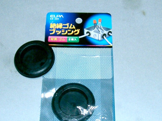 マフラーパッキンが手に入りません。そこで何か代用品はとさがしていましたが、配線部品の「絶縁ゴムブッシング」の内径30ミリ、外形47ミリを真ん中から輪切りにしてつかいました。